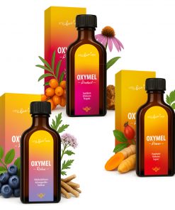 Oxymel ist eine traditionelle Zubereitung aus Honig, Apfelessig und ausgewählten Kräutern oder Früchten. Die Kombination dieser Zutaten wird bereits seit der Antike verwendet. Heute wird Oxymel pur vom Löffel oder mit Wasser gemischt als Getränk genossen und lässt sich vielseitig in den Alltag integrieren.