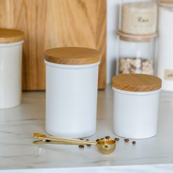 Du kannst in der Keramikdose alle trockenen Lebensmittel aufbewahren. Wir empfehlen dir die Vorratsdose besonders für die Aufbewahrung von Kaffee & Tee. Aber auch Salz, Zucker, Gewürze, Kekse, Müsli und weitere Lebensmittel kannst du darin frisch halten.