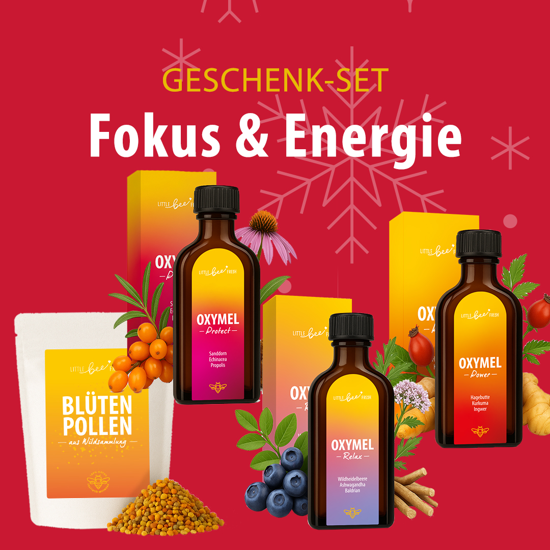 Blütenpollen und Propolis können bei empfindlichen Personen allergische Reaktionen auslösen. Wenn du Pollenallergiker:in bist oder empfindlich auf Bienenprodukte reagierst, taste dich bitte vorsichtig heran oder verzichte ganz auf die Anwendung.