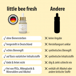 Hinweise: Nicht geeignet bei Überempfindlichkeit oder Allergien gegen Bienengift.