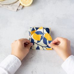 Reinige deine Bio-Bienenwachstücher mit Spülmittel (am besten ohne Alkohol) und kaltem Wasser. Anschließend trocknen lassen und bis zum nächsten Einsatz in der Verpackung oder einer Küchenschublade aufbewahren.