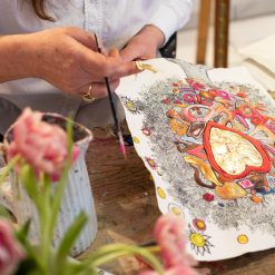 Stefanie Steinmayers Lieblingsthema sind die Herzen. Ihre unverwechselbare Kunst ist sehr bekannt am Bodensee und schmückt endlich auch unsere Bio-Bienenwachstücher.