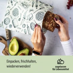 Die antibakteriellen Eigenschaften des Bienenwachses halten deine Lebensmittel länger frisch. Perfekt für Käse, Brot, angeschnittenes Obst und Gemüse.