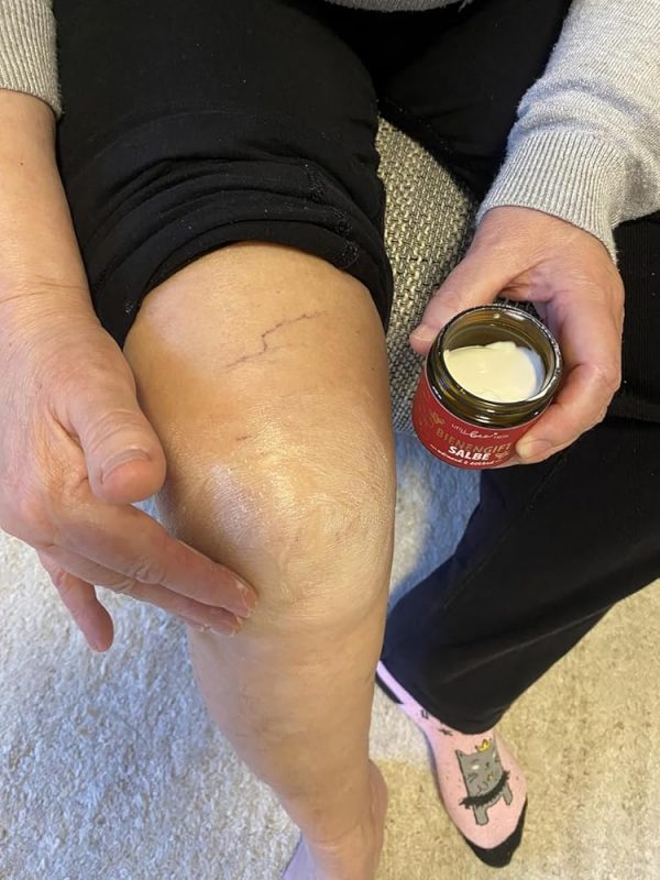 Bin über Freunde auf diese lbe gekommen. Fand die Idee gut, weil sie von Imkerinnen gemacht wird und nicht so ein Billigzeug aus der Drogerie. Nutze sie am Knie, morgens und abends einreiben. Nach ein paar Tagen wurde es merklich entspannter. Werde ich nachkaufen.