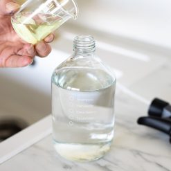 Das Glas der Sprühflasche ist 16 cm hoch. Der Durchmesser beträgt 8 cm und es passen 500 ml deines Lieblingsreinigungsmittels hinein.